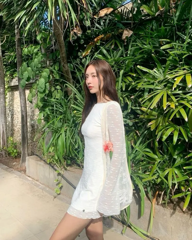 Váy 2 dây trắng suông nhẹ nhàng, tạo nên phong cách tối giản khi đi dạo