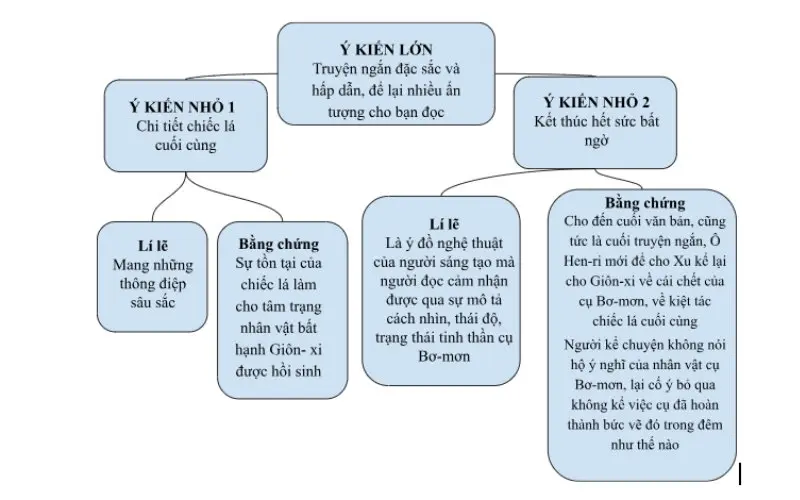 Vẽ sơ đồ thể hiện mối quan hệ giữa ý kiến lớn, ý kiến nhỏ, lí lẽ, bằng chứng trong văn bản