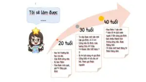 + Hình ảnh: là những đường tròn với tâm điểm là “Tôi của tương lai” và các tiêu chí cần đạt: tài chính, sở thích, cống hiến, công việc, gia đình.