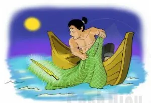 Minh họa cho nhân vật: Lê Thận và sự việc kéo lưới 3 lần đều chỉ được duy nhất một thanh sắc ( lưỡi gươm thần)